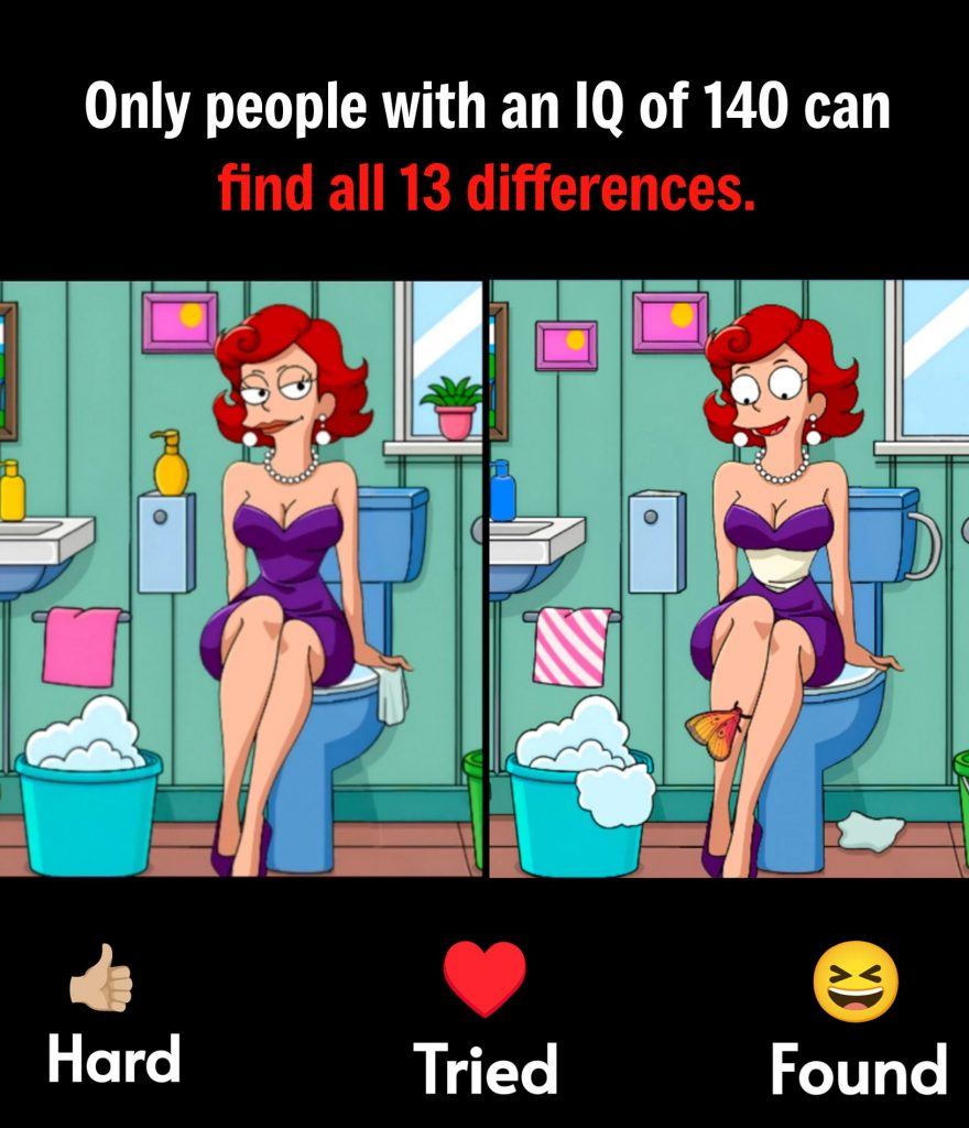 It’s colorful, quirky, and surprisingly tricky. At first glance, this glamorous cartoon bathroom scene looks like a playful illustration straight out of an animated show. But hidden within the image are subtle, sneaky differences just waiting to trip you up. This is more than just a “find the changes” puzzle—it’s a visual workout that tests your patience, sharpens your observation skills, and gives your brain a fun little boost.